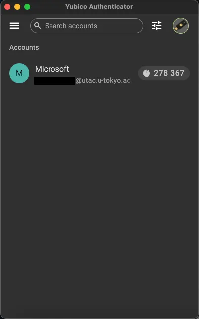 - The process is complete if you see that your account has been added in the Yubico Authenticator application.