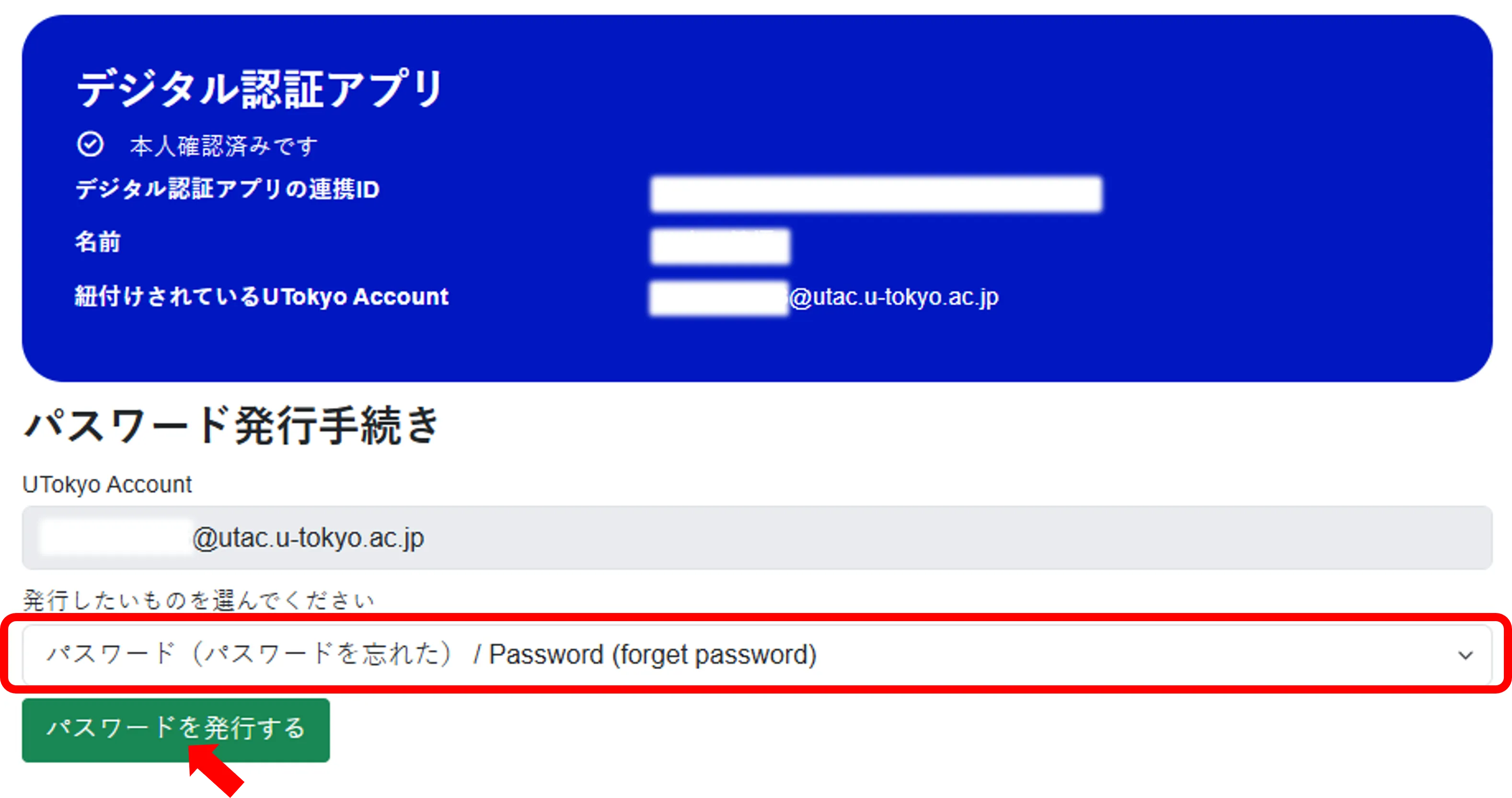 UTokyo Account本人確認サービスを利用してパスワードを再発行する